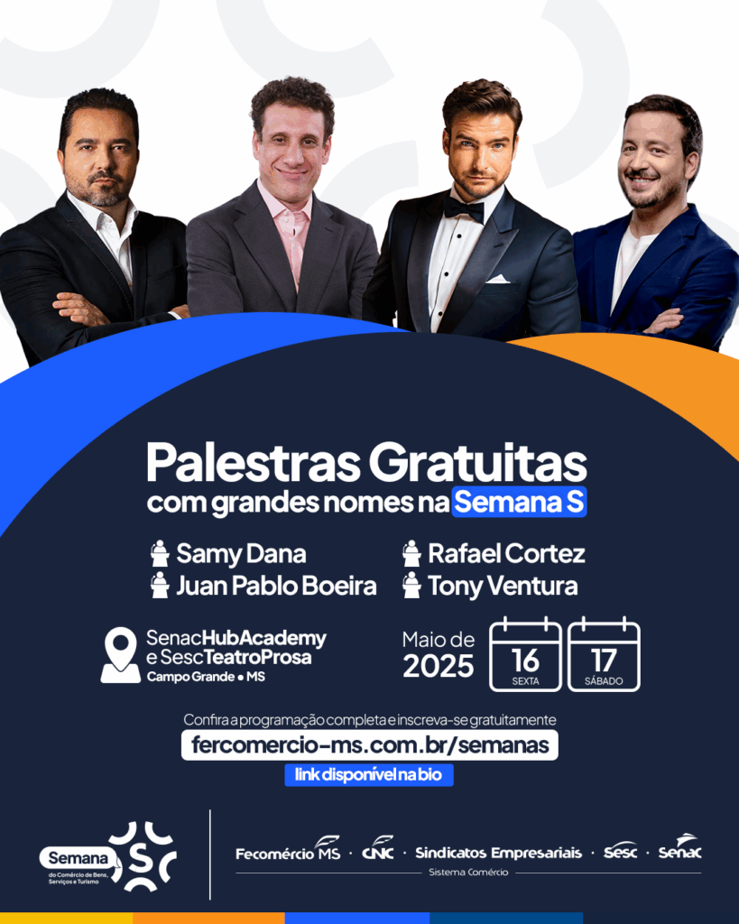 Uma oportunidade IMPERDÍVEL está chegando para transformar o seu negócio e impulsionar suas vendas, mas também vale para aqueles que querem dar um “up” na carreira. Prepare-se para a Semana S do Comércio, um evento completo, organizado pelo Sistema Fecomércio, por meio do Sesc, Senac, Fecomércio e Sindicatos, pensado INTEIRAMENTE para VOCÊ, que é o […]